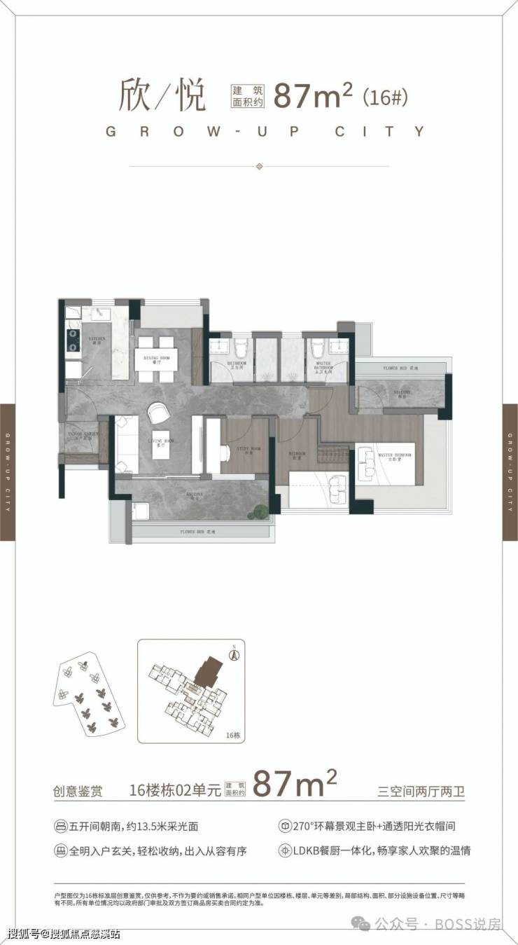 户型亮点:全南向开间、主卧套间设计、多飘窗赠送、动静分区,兼顾实用性与舒适度,适配三口之家、二胎家庭、三代同堂等多种家庭结构。