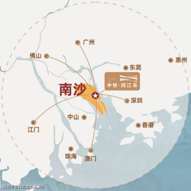 中铁·阅江来位于大湾区时代前沿的金融商务板块明珠湾板块,南沙的核心地带,蕉门中心板块与明珠湾起步区交汇处。