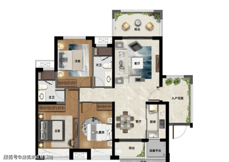 F户型:建面约105㎡(标准层)