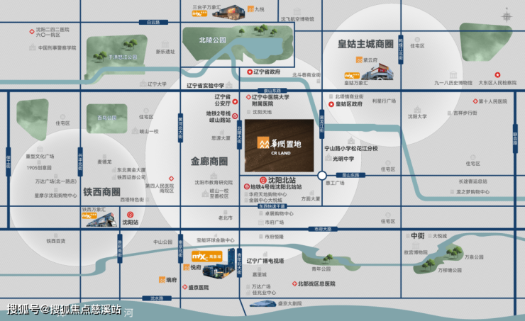 沈阳华润中寰悦府占位沈阳城市绝对中心位置,鼎立于中央都市走廊、国家战略发展核心区、沈阳经济、产业、地标发展黄金线一沈阳中轴“青年大街”,即城市北金廊之上,沿线拥享多个城市级地标。为地铁2号线上盖,紧邻城市一级主干道青年大街,背靠沈阳最主要的铁路客运站之一沈阳北站,无风雨联通桃仙机场T3航站楼,立体交通路网,枢纽中心之地。未来将打造以地铁、高铁等交通站点为中心的TOD万象商业,形成城市地标级国际化建筑群,塑造沈阳形象中轴线。