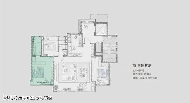 主卧4米开间,匹配中产精英人士品位追求,将主卧打造成套房设计,预留L形衣帽间空间;更令人倾心的是,独立卫浴设置拥抱悠闲时刻静谧的美好居室里,音乐缓缓尽享心情愉悦。