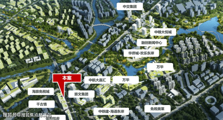 项目位于三亚市吉阳区迎宾路(海旅免税城北侧)。随着自由贸易港政策落地,在总部经济及中央商务区规划中,东岸单元作为建设大型综合消费商圈+总部经济核心区。汇集中粮、中交、保利、中航、中铁建、五矿等世界500强企业,已成为三亚城市功能上的中轴城心,凝聚着最重要的部门,昭示着三亚未来发展的方向,区域价值未来可期。