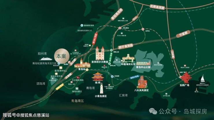 ⑤立体交通:紧邻火车站、胶宁高架、胶州湾隧道,地铁连接地铁2号线,实现无风雨归家
