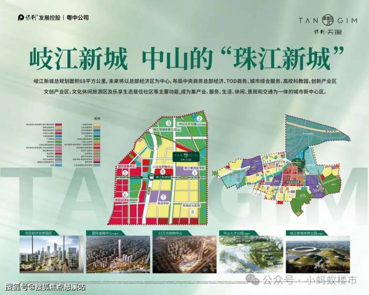 保利天珺落子岐江新城核心区,这里是中山政府斥巨资打造的33平方公里“城市新中心”,规划涵盖**金融CBD、总部经济区、双城轨TOD枢纽**,未来将聚集超20座百米商业地标、3座400米超高地标,成为中山对接湾区的门户。