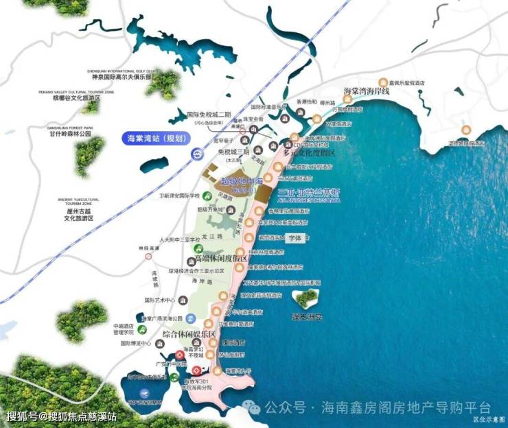 ◎通达交通属性——距离海岸线约 2 公里,距离海南环岛高速路约 4 公里,通往高铁站及机场都十分便利,未来还规划了海棠湾高铁站,建成后出行更加便利。