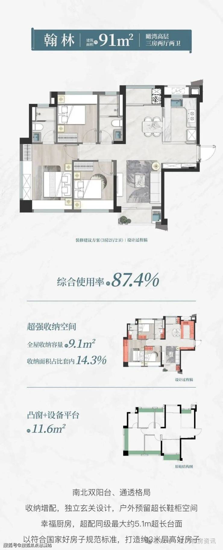 91㎡户型:岛外双阳台孤品,自带王炸稀缺光环