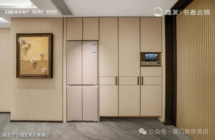 建发·书香云锦高的精装标准,在同区域内同档产品中位列前茅。比如:厨房采用的是建发幸福厨房理念,在91㎡样板房可以看到,半开放式设计配玻璃隔断,空间大且通透!5.1米超长台面和餐厅移门互动方便。U型布局贴合人体工学,可一条龙操作,大窗户采光通风佳,比传统110平厨房大,还留了双开门冰箱位,让烹饪成享受。