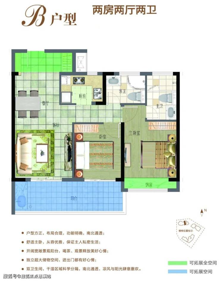 B户型:81.73㎡-84.91㎡两房两厅两卫