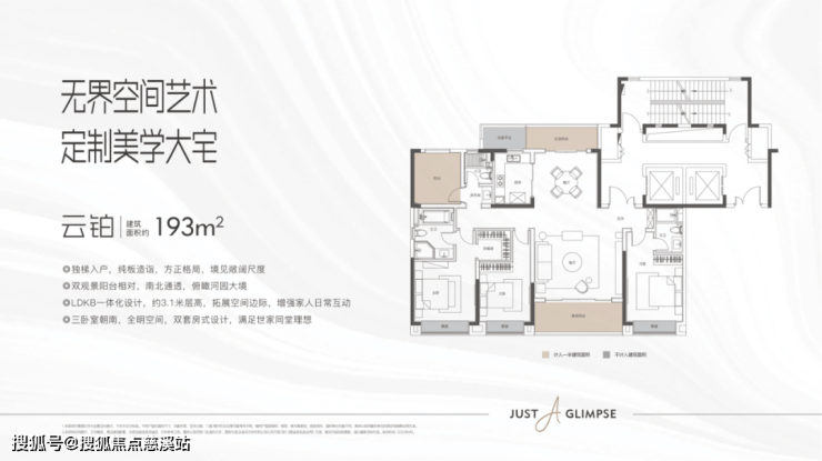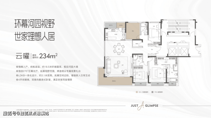 主要的户型是建面约为193/234㎡两种户型,193㎡户型方正格局,境见敞阔尺度。234㎡户型,约18.5米轩敞面宽,极目河园大境。