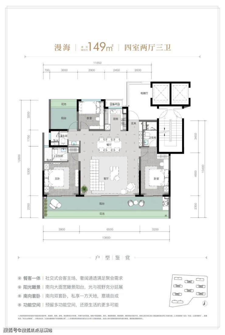 规划建筑面积约126-213㎡观海奢装大平层,约3.1米阔绰层高,部分户型创新设计270°全景飘窗主卧套、四开间朝南等,全成品高标奢装,营造全新舒居体验。