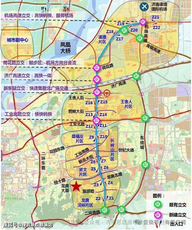 凤凰路南北贯通济南先行区与高新区,工业北路(高架路)可迅速接驳全城交通动脉