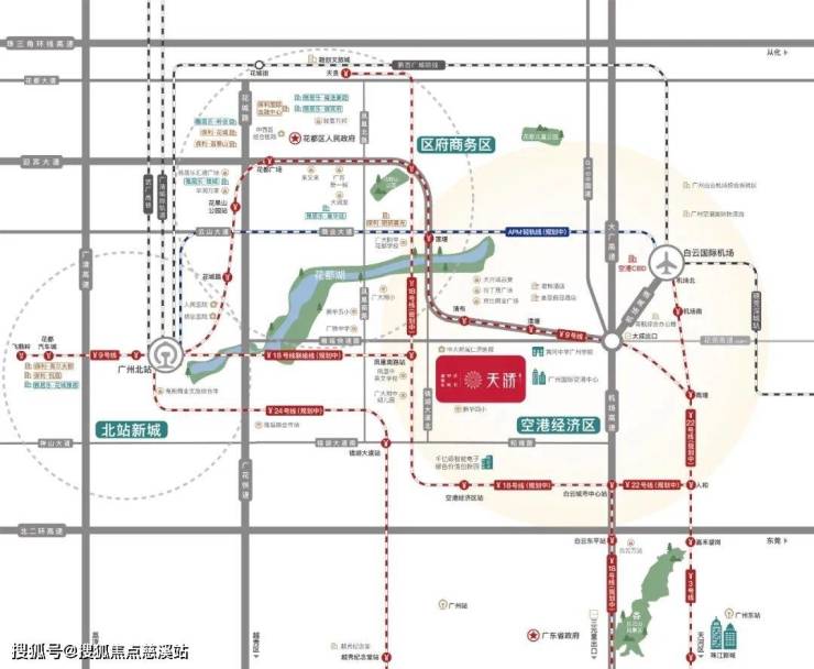 【交通】天骄位于花都空港核芯区,距9号线清塘站(已开通)约1.5公里,临近24号线镜湖大道站(规划中)及18号线北延长线凤凰南站(规划中),三地铁汇聚,3站到珠江新城CBD。周边“一机场三地铁三城轨”多维立体交通,白云机场与广州北站双强联运打造大湾区综合交通枢纽,融入粤港澳大湾区1小时交通圈。TOD立体多维交通,通联世界,畅享城际无界。