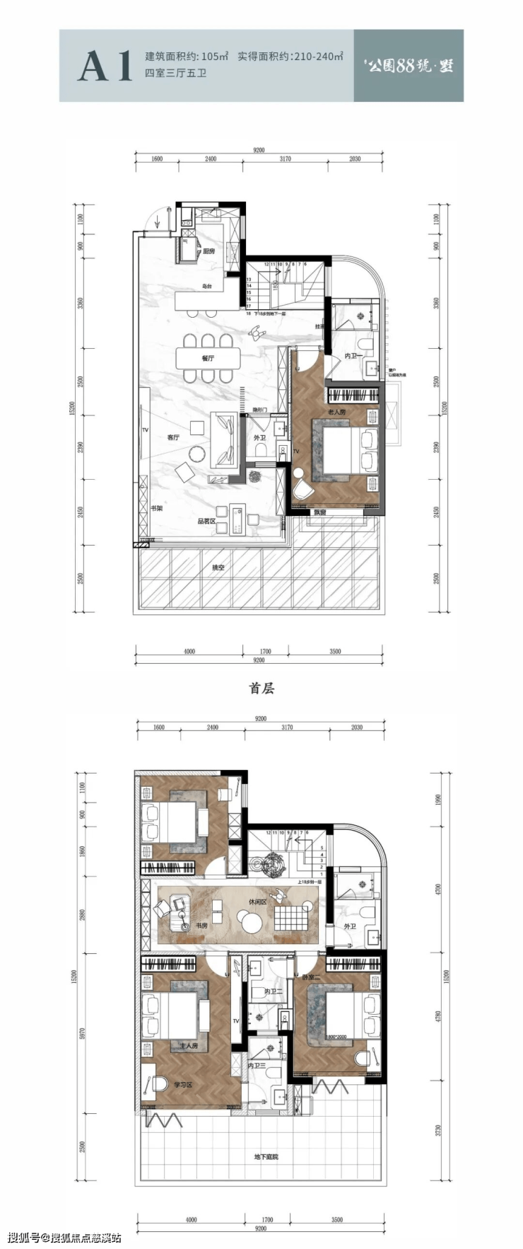 奢华主卧套房配独立衣帽间卫浴 私密性高