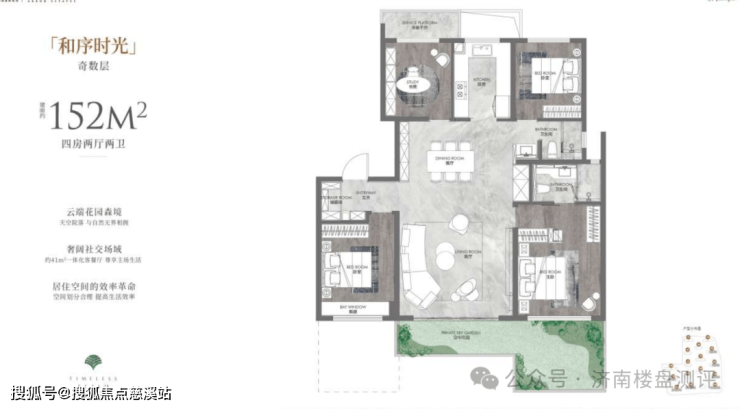 4、155/152平米户型,得房率100%