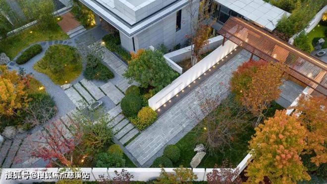 入则静谧,出则繁华,庭院式的大门景墙分隔出喧嚣与宁静;简化空间上的层次与线条,强化入口仪式感,对景景墙的采用圆形灯带,通过日出日落昼夜变化打造出光影与场地的温度感。