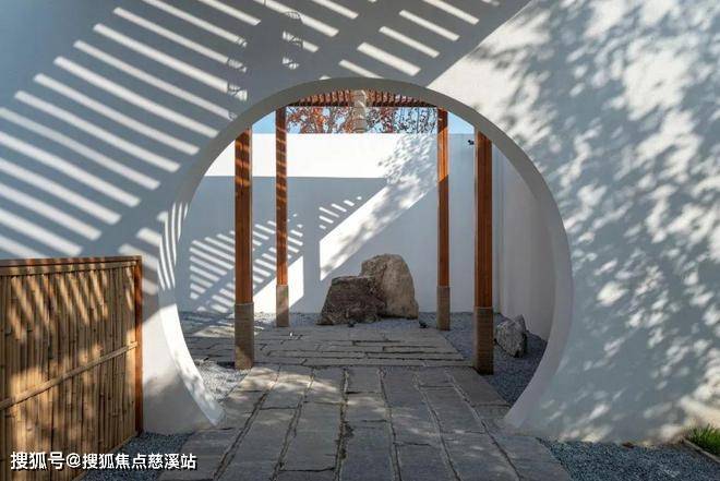 穿过月洞门,漫步青石板道,视线豁然开朗。寻水声而至景观挑台,临崖远眺,晴空远山、落日余晖,尽在眼底。置身其中,感受人与自然的互动,体验四时变话和内心的静思。