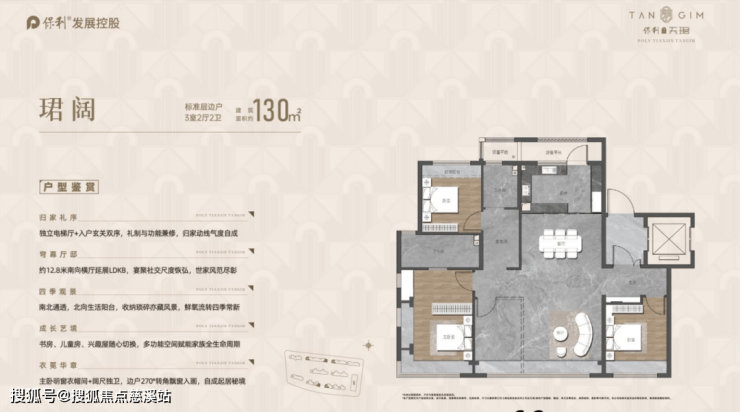 保利津门天珺做了107-169㎡四个户型,最抢眼,也是我最喜欢的,非130莫属。面积不算夸张,细节绝对值得咂摸,改善的尺度、家庭周期变化的弹性、个性空间需求全能满足。