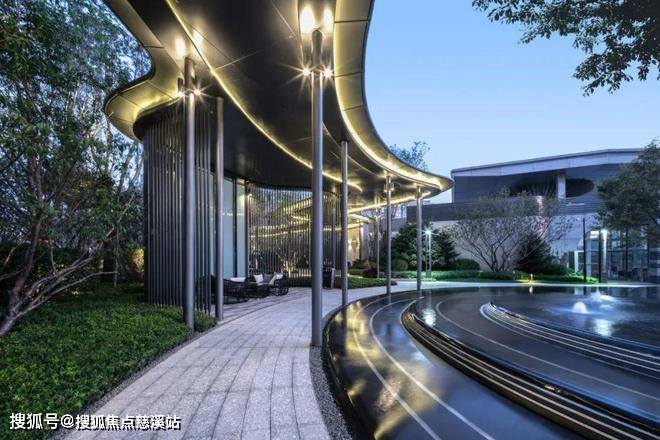 水景是赋予世间最灵动的意境。抬起的帆船是我们羽翼形的廊架雕塑,可观、可停,巨大的水幕下,我们运用现代的设计手法、回游式的景观动线,在创新布局中打造了一个丰富而生动的空间。