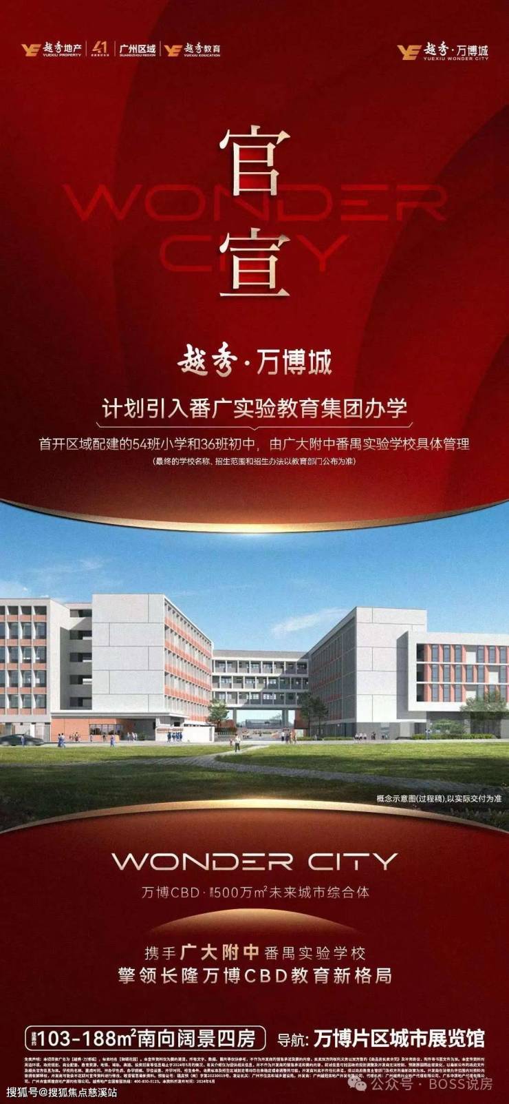 优质学校合作办学:越秀・万博城(和臻)组团配建的九年制公办学校,由广附番实具体管理,和广大附中同根同源,同教材、同教研、同考试,共享内部资源,计划于 2025 年 9 月正式开学,提供小学至初中阶段的优质教育服务