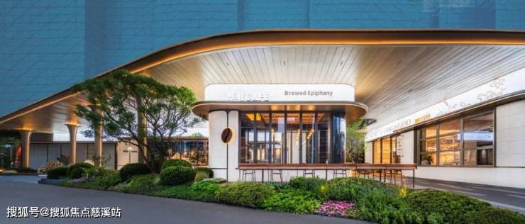 第五步,在檐廊下点缀水幕背景墙,并穿插布置吧台、休憩坐凳、外摆桌椅,让人可随意驻留。