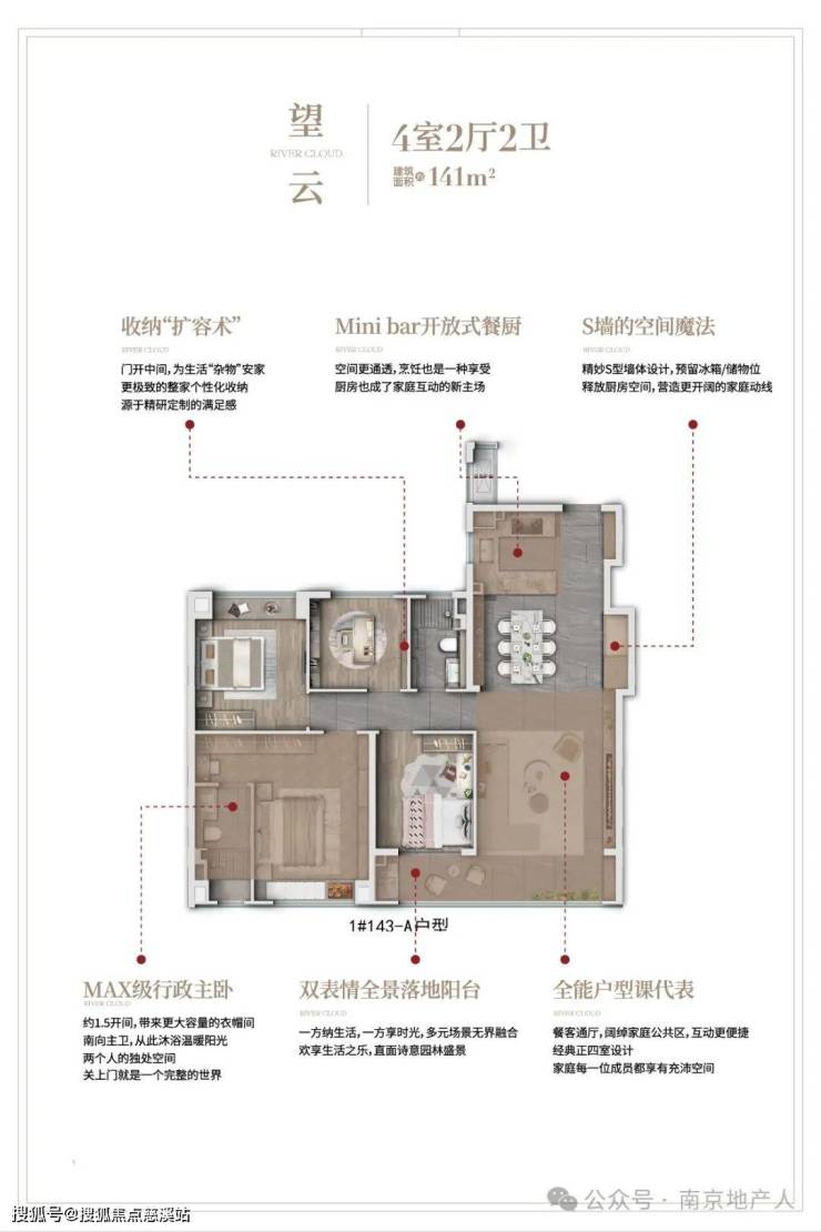 观潮望云在室内设计上,将巴黎的时尚摩登与金陵的古典尊贵相融合,引入奢石、奢皮、奢玉、奢板、奢玻五奢体系,从细节质感上给予归途惬意感受;在生活方式上,以美学主义为引领,精研人性化细节、智慧科技、无界收纳等,打造“会呼吸的房子、会思考的家”,诠释天际人居的精工之美,演绎世界湾区的样板生活。