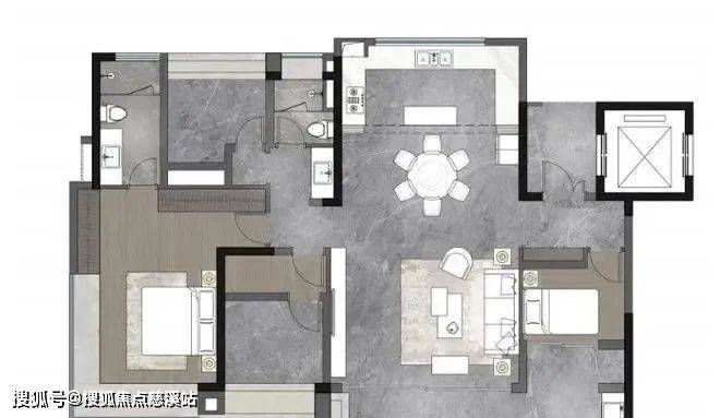 :LDKG 大方厅设计,使客厅、餐厅、厨房、阳台一体化,空间通透开阔,增进家庭成员互动。南北通透的格局,保证空气自然流通。U 型中厨与岛式西厨结合,满足多样烹饪需求,无论是中式大餐还是西式甜点都能轻松制作。主卧配有豪华衣帽间,满足主人收纳需求,270° 转角飘窗则带来独特观景视野,享受惬意私人时光。