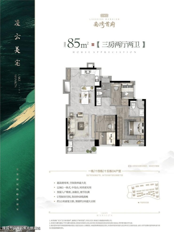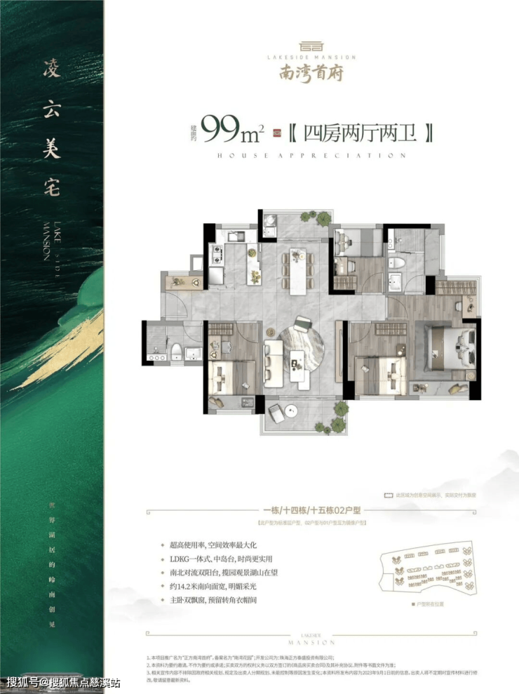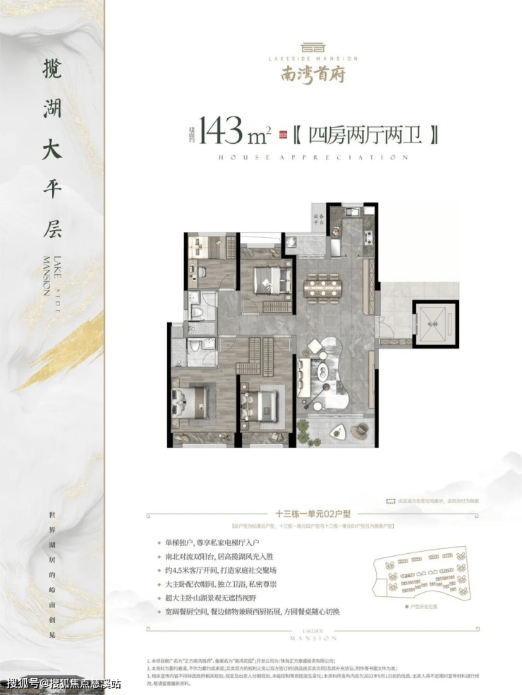 南北对流双阳台,居高揽湖风光入胜