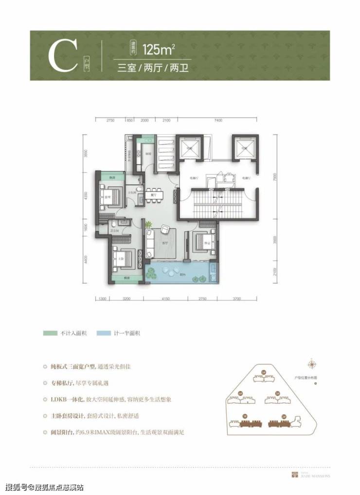 户型(南北纯板式,中央空调+双阳台)