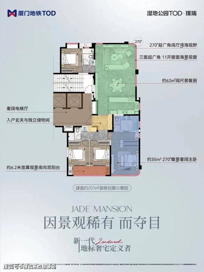 湿地公园TOD203㎡位于4号地块,是岛内新房罕有的纯粹大平层地块,约52m的超宽楼间距(4-2、4-5),五缘湾昂贵的11扇窗,引海景入室;约62㎡奢阔客餐厨,坐拥270°IMAX湾海环幕视野,震撼人心的大尺度空间;星级套房主卧,270°全景舱视野;约6.2米宽幕阳台,将湾芯CBD繁华盛景尽收眼底。