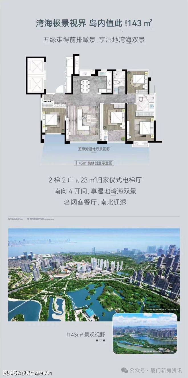 2-2栋为143平,有2个户型,非常特别,是厦门唯一在售头排景观143平,因五缘湾不再供应景观地块,非常稀缺,这次我们详细了解一下143平的户型!