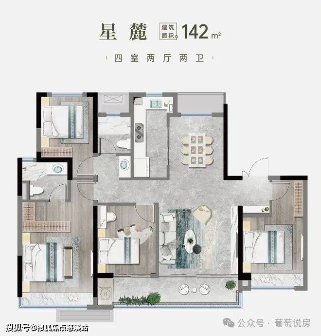 户型创新:全南向落地窗设计(如142㎡户型6.9米面宽),部分户型赠送设备平台(约5-8㎡)。