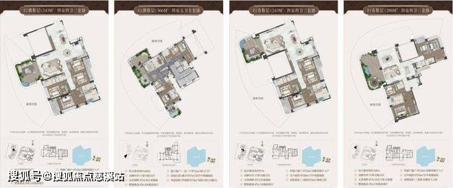 288㎡四房四卫三套卧,270°环幕横厅设计,可将湖景框成天然背景墙,适配高端商务社交或家庭聚会场景,部分户型配备约54㎡空中庭院,视野开阔,功能性强。