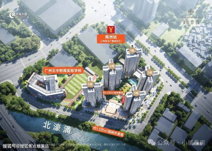 从外部来看,项目背靠河涌,打造了一个滨河公园,与周边的海珠儿童公园、海珠湖、海珠国家湿地等,形成了巨大的天然的生态背景板。