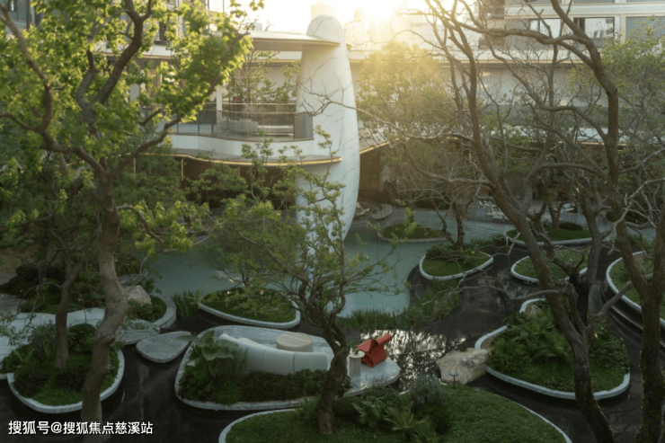4600㎡主入口景观前场,结合水景与树阵的穿插,熟悉与烟火交织,让回家变成慢慢松弛的归途,充满仪式感。双层景观体系,成就世界顶级酒店虹夕诺雅野奢感。