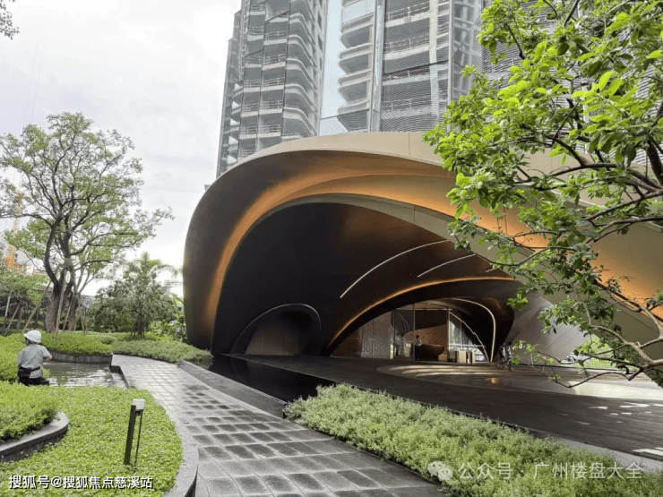 这里说一下,负一的大堂也是有会客厅的,平时坐在会客厅的沙发上等家人停车拿车啥的都很方便。不过项目的地下车库目前只是开放了一小部分,后续交标如何以实际为准。不过除了车库之外,园林和楼栋的大堂也已经做得七七八八了,和传统园林富有棱角的设计不同,保利珠江天悦从园林到电梯间,都采用了大量的弧线设计,就好像江面上的波浪一样,刚好跟项目的案名相呼应。