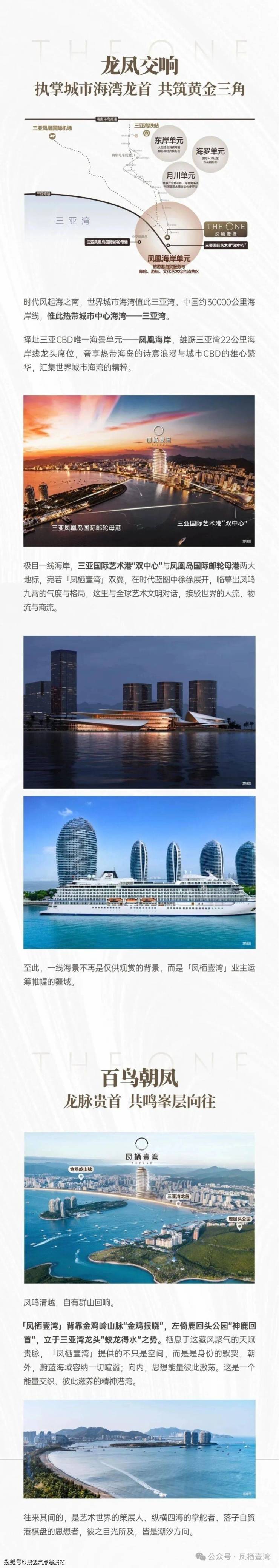 凤栖壹湾精准落子三亚中央商务区(CBD)内唯一的南向亲海板块——凤凰海岸,雄踞约22公里三亚湾黄金岸线“龙首”之位。项目左拥总投资约35亿元、即将于2026年底启幕的三亚国际艺术港(涵盖全球文物艺术品免税交易中心及1400座歌剧院),右依年客流量超203万人次的中国首座8万吨级国际邮轮母港。艺术金融、邮轮经济与一线海景在此交汇,重新定义自贸港时代的资产价值维度。