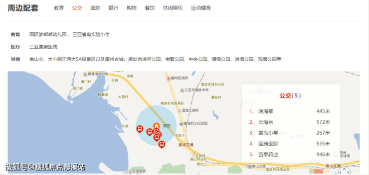 项目距海南环线高速出入口仅1.5KM,距崖州高铁站约4.5km,距凤凰机场约26km;周边有三亚国康医院、寰岛实验小学、崖州科技城农贸市场等配套;同时拥有南山寺、大小洞天2大国家5A级景区。