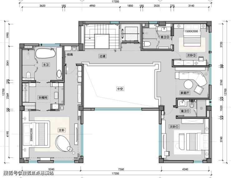 二层卧室布局错落有致,挑空区丰富空间层次;