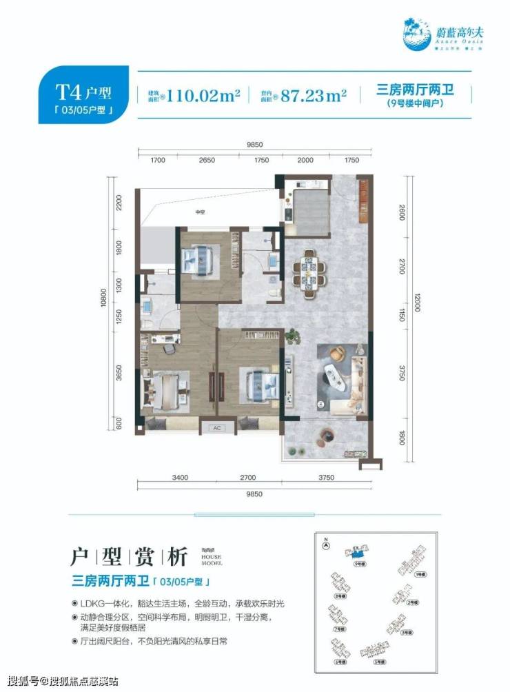 9#楼中间户LDKG一体化,豁达全龄互动主场动静合理分区,空间科学布局明厨明卫,干湿分离厅出阔尺阳台,不负阳光清风