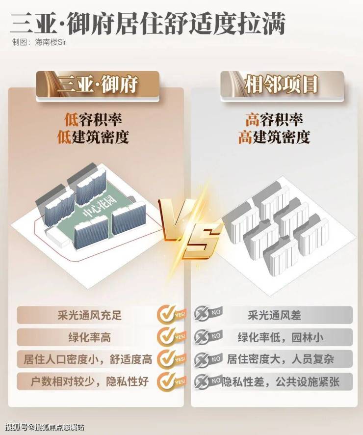 楼Sir现场对比过相邻项目,同样的地块条件,别家塞了6栋楼,而三亚·御府只规划4栋,通风采光直接秒杀。