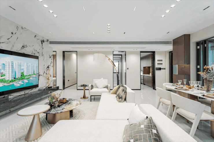 传统精装最多送个空调、热水器,定制柜得自己花钱折腾,但在三亚·御府,直接将全屋定制和全品类家电一步到位。