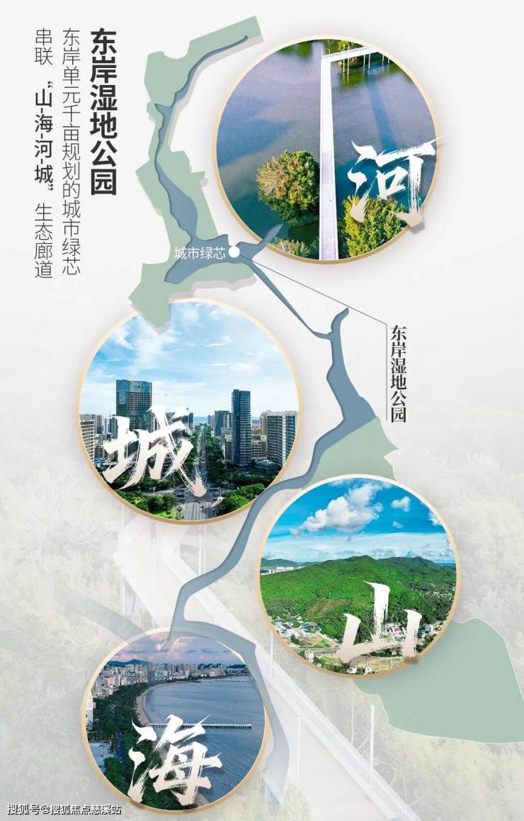 与项目仅50米之隔,就是东岸单元千亩规划的城市绿芯——东岸湿地公园,串联“山-海-河-城”生态廊道,推窗即见鹭鸟翱翔、落日映水的自然画卷。