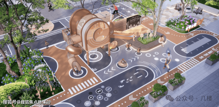 除了下沉庭院,社区内还规划打造有蜗牛主题乐园,计划设置滑梯、沙坑、跑道、乒乓球桌等,在满足亲子互动功能的同时,以美学化场景构建充满活力的成长空间。