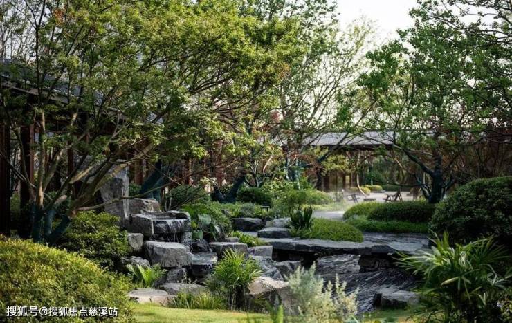 楼盘别墅区和洋房区是隔开的,别墅区打造有独立入园门户,中式飞檐翘角,搭配古铜色金属镂空大门,庄严中不失现代典雅风范,高端大气。跨过大门后,就是贯穿南北的中轴景观,一路归家,一路是品质、生活、美学的产品力展示。景观中轴上,涵盖曲水游廊、叠瀑石景、御水步桥、远山石径、云山亭等,已全部实景兑现。在这里慢行、赏景、观瀑、休憩……一步一景,步步不同景。