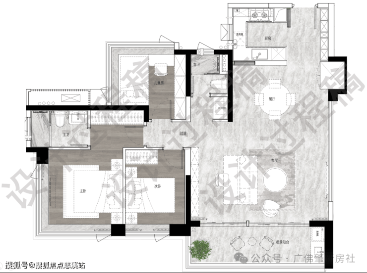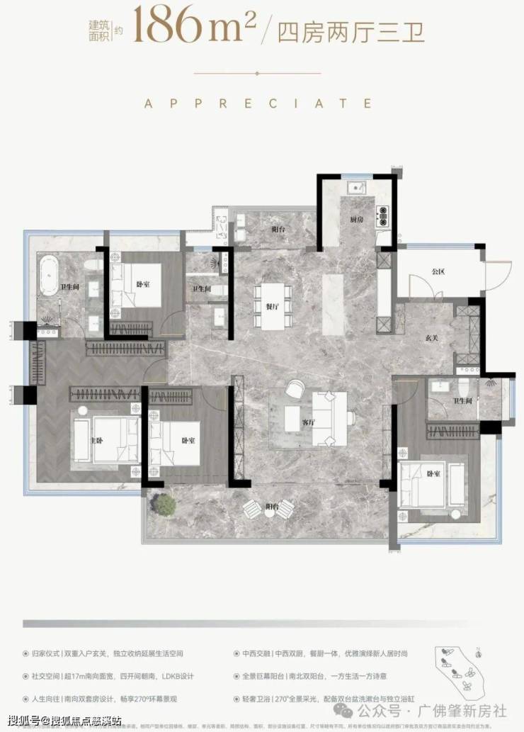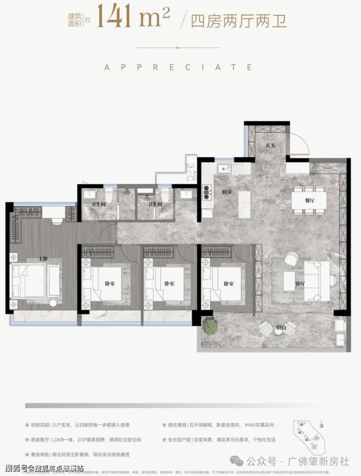 ✅5.9m开间巨幕客厅,主卧270°全景飘窗