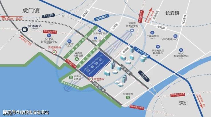 轨道交通:紧邻2号线(在建中,预计27年通车)及3号线交椅湾站(规划中),4站可达滨海湾站。东莞地铁2号线(在建中)、9号线(规划中)衔接深圳地铁20号线(规划中)、18号线(规划中),1站直达深圳