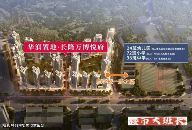 •教育资源:132班(24班幼儿园、72班小学、36班中学)教育用地均已动工,引入广州市东风东教育集团、番禺区实验幼儿园教育集团、广东广雅教育集团,预计2025年9月开学