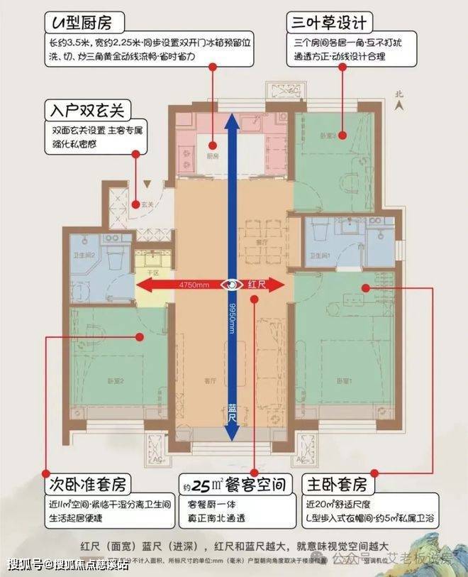 优点:三叶草全明户型,空间利用率高;双入户玄关设计,增加储物空间,而且设计有家政间。