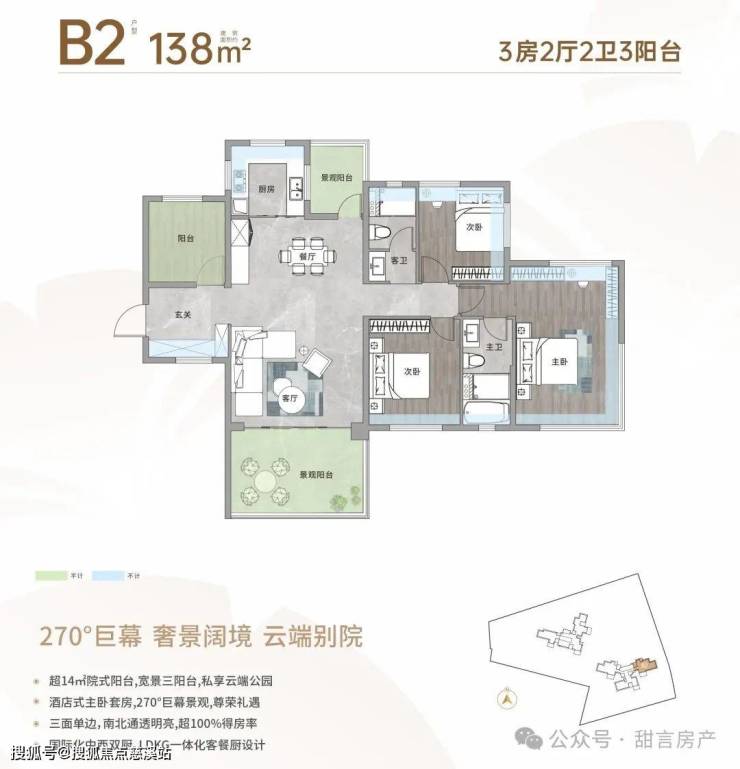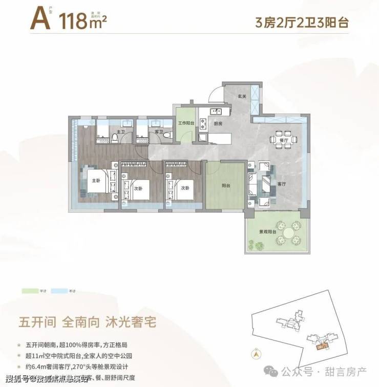 8⃣【创新户型】超新规作品,实用率超100%,首创空中院式阳台,270°头等舱式主人房。