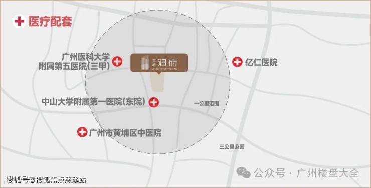 4、医疗:2所三甲医院:中大附属第一医院(三甲)约500米,广医大附属第五医院(三甲)约1.2KM,3所医院:黄埔区中医医院(二甲)、黄埔区妇幼保健院、亿仁医院。